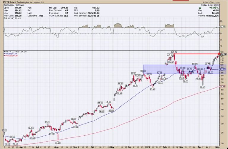 Technically, PLTR stock is at a key inflection point. The stock closed right under its all-time high and has a history of big gaps on earnings day. It traded higher in five of the last six earnings reports, with an average gain of 21%.